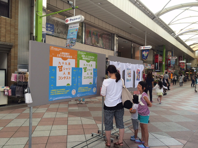 2015年8月1日2015年8月1日 admin 九十九島Tシャツデザイン一般公募の中から、99点を選出 Tシャツにプリントして、佐世保市四ヶ町アーケードで人気投票が始まりました 備え付けの投票用紙にお気に入りのデザインの番号を書いて投票をお願いします 人気投票の上位9種をプリントして販売する予定です 展示期間 8月1日土曜日から12日水曜日まで(午前10時から午後6時まで) 人気デザインの上位9点に応募した方の中から抽選で9名様に3,000円の商品券をプレゼントいたします 発表日 9月19日(九十九島の日)