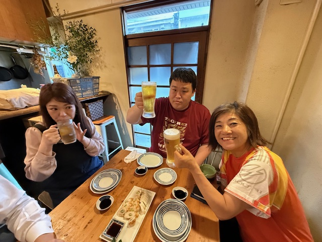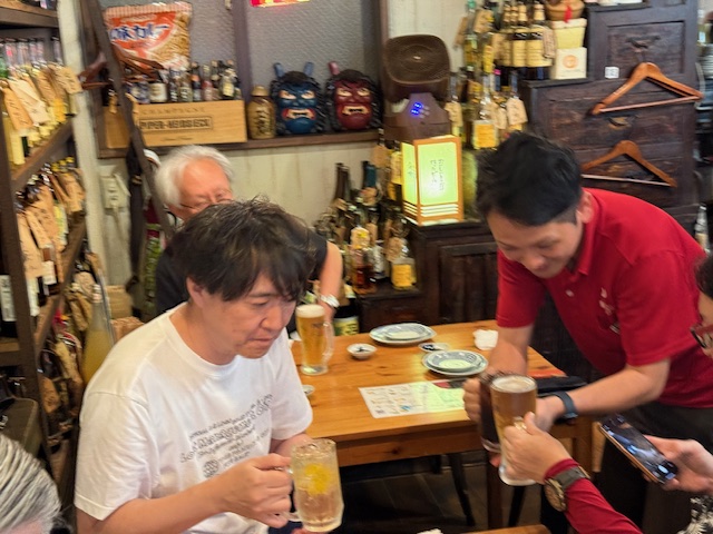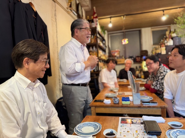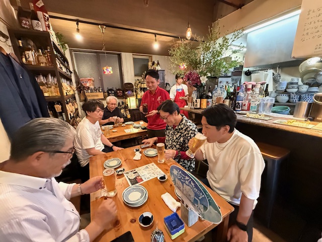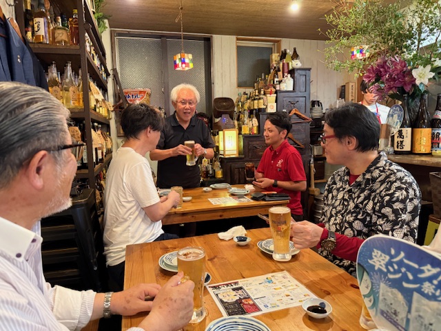 2025年7月23日2025年7月23日 admin 2025年7月22日・午後6時30分 歩歩屋(ぽぽや)佐世保市塩浜町1-15 出席者(順不同・敬称略)長田、中村研人、田崎、角田、川原、松本、指方、古賀巖、古賀匡、川島、上地、川上、中村徳裕(以上) 欠席者 山領、豊島、福田、鶴(以上) たくさんの料理が出て飲み放題で約3時間も盛り上がりました。 長田新会長 挨拶